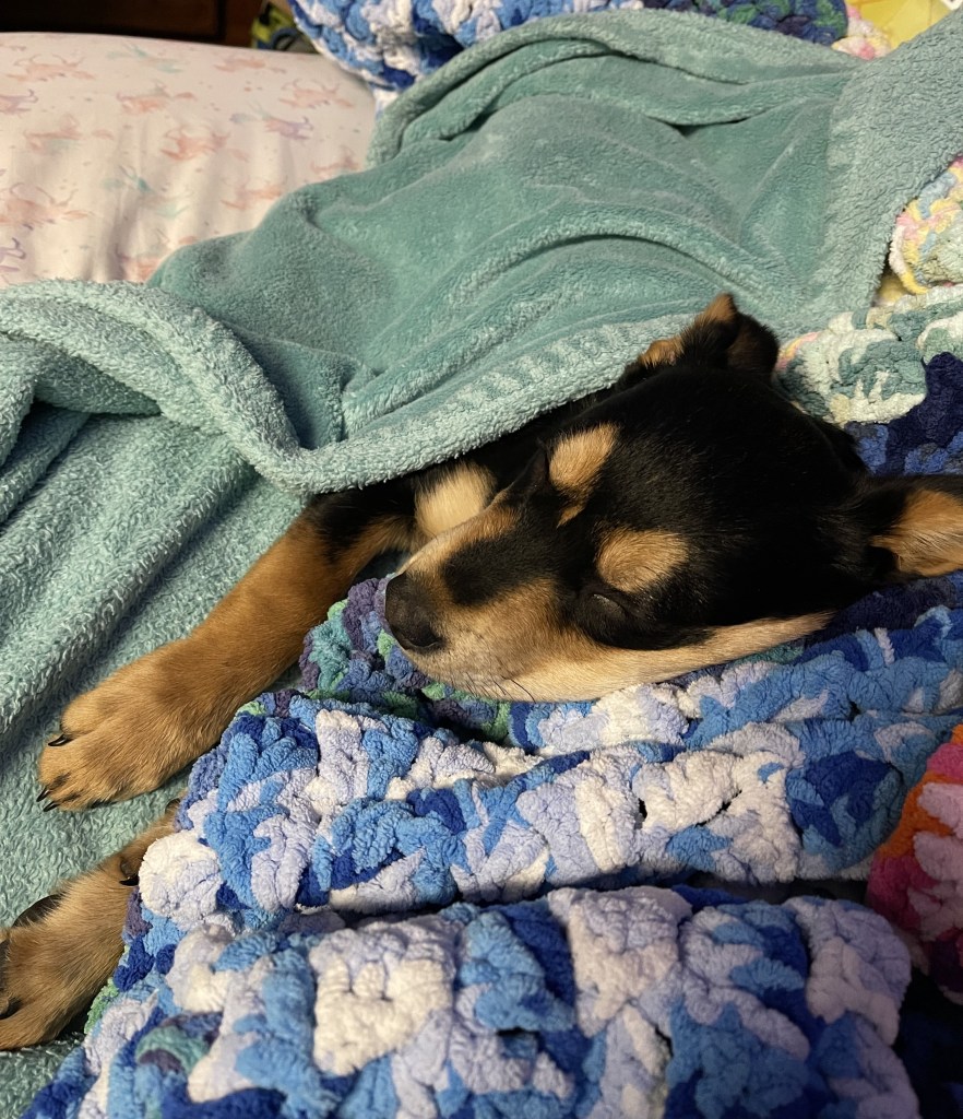 This is my dog Zelda as a puppy! She is now 3 years old and we got her in the Walmart parking lot for 20$ for my birthday. Best present ever!